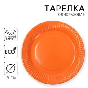 4856790 Тарелка одноразовая бумажная «Однотонная» оранжевая