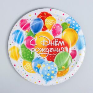 4810532 Тарелка бумажная «С днем рождения»,шарики 18 см 10 шт