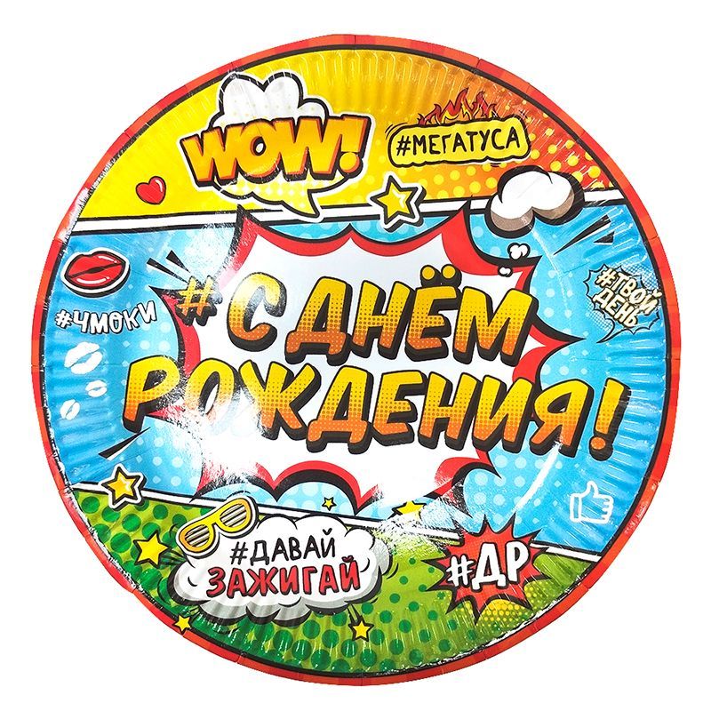Тарелки «С Днем Рождения» Молодежная , 6шт в наборе, 18см.