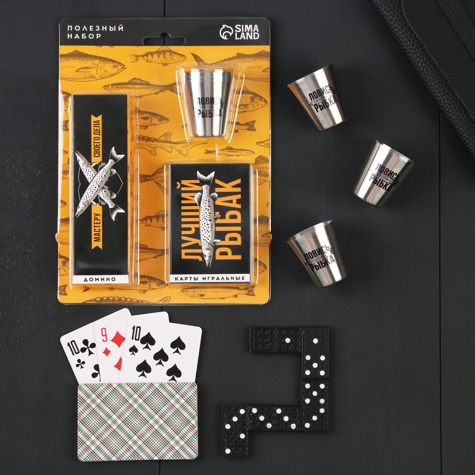 7024718 Подарочный набор «Лучший рыбак», карты, домино, стопки 3шт