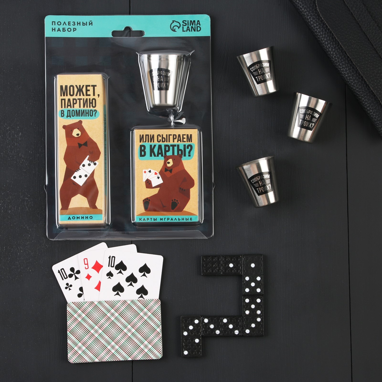 7024719 Подарочный набор «Сообразим на троих», карты, домино, стопки 3шт