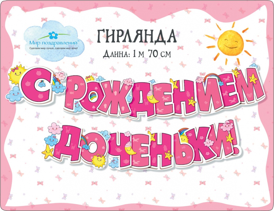 71141 Гирлянда С Рождением Доченьки! Розовый, 1,7м
