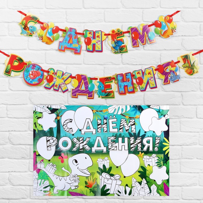 7117611 Набор Гирлянда и плакат-раскраска «С Днем Рождения»,Диномир 16 х 21 см