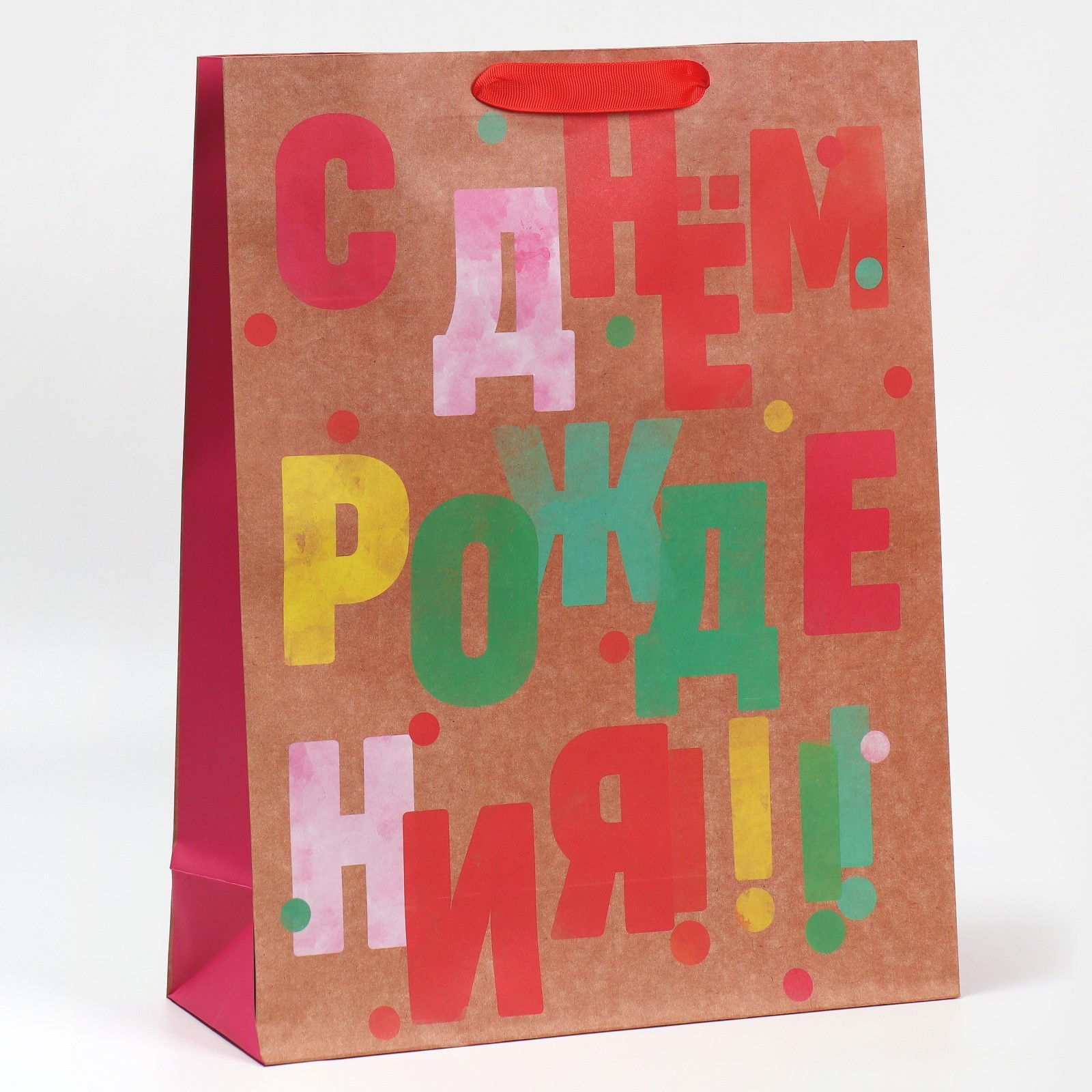 7303798 Пакет крафт «С днём рождения», 31х40х11,5 см