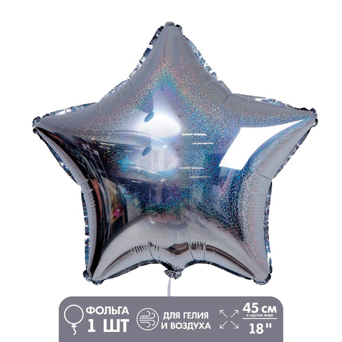 7339377 ШФ 18″ (46см) Звезда «Звезда голография», серебристый, в упак