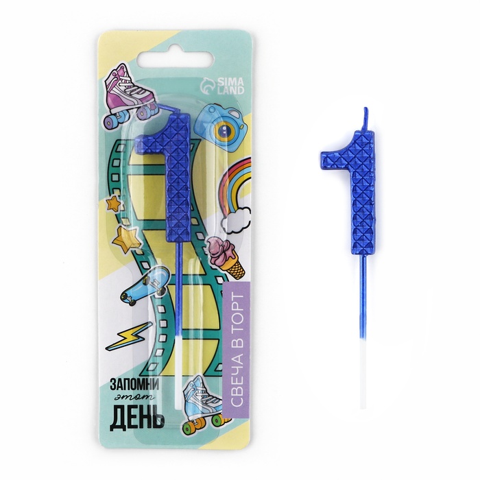 7479371 Свеча-цифра для торта «1», синяя, 4 х 13 см.