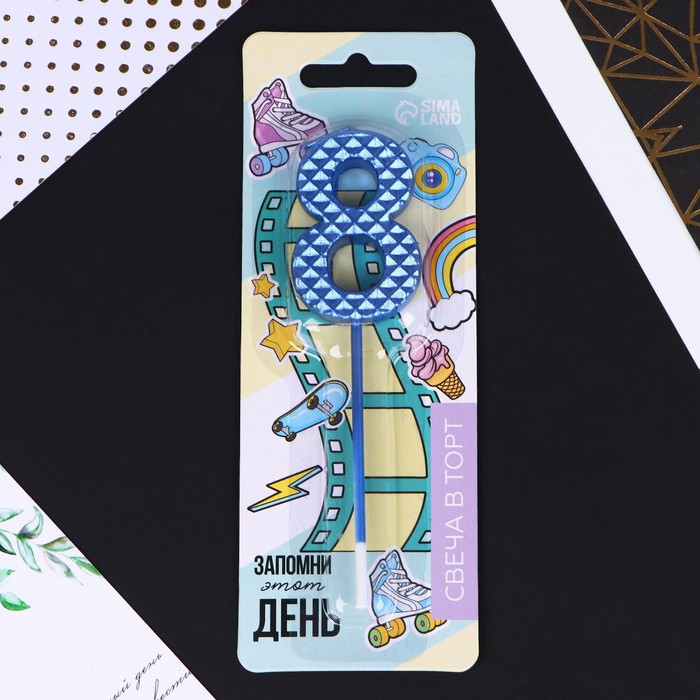 7479378 Свеча-цифра для торта «8», синяя, 4 х 13 см.