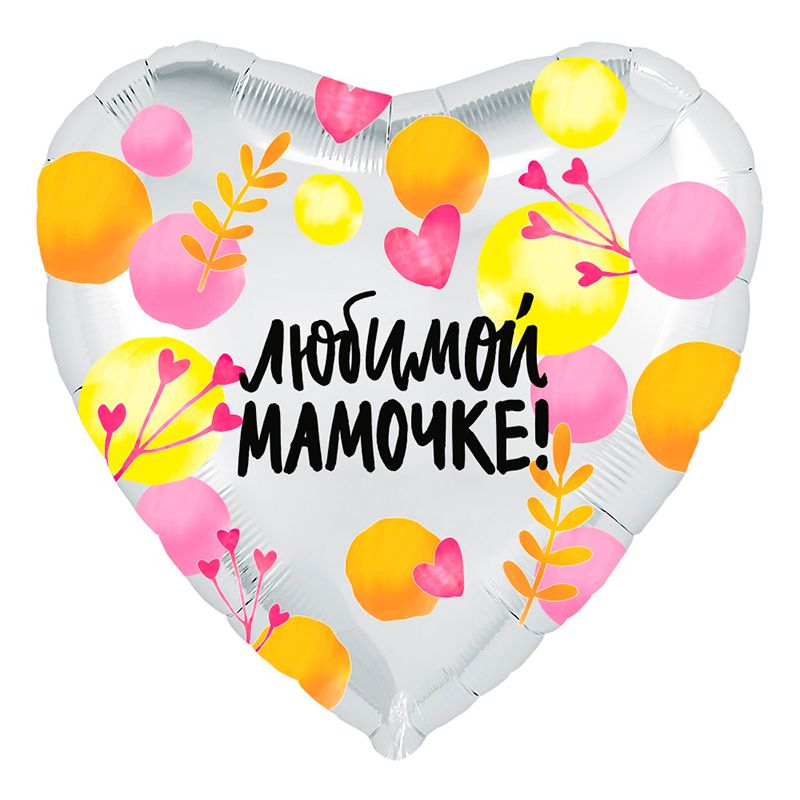 Фольгированный шар 18″ (48см) фирмы AGURA, производство Россия. Сердце — надпись «Любимой мамочке!»