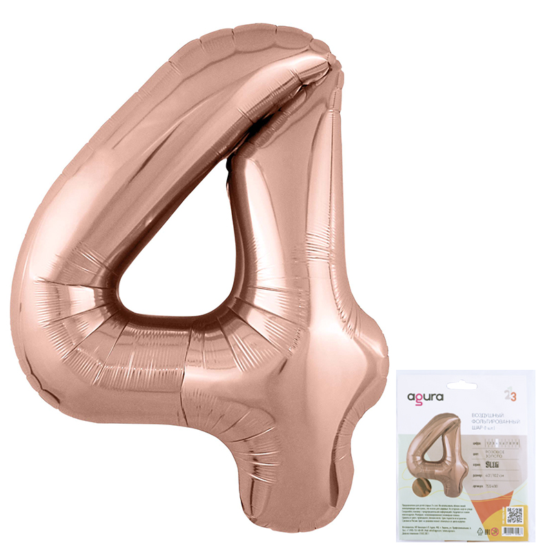 755488 ШФ 40″ (102см) Цифра «4» Розовое золото в уп