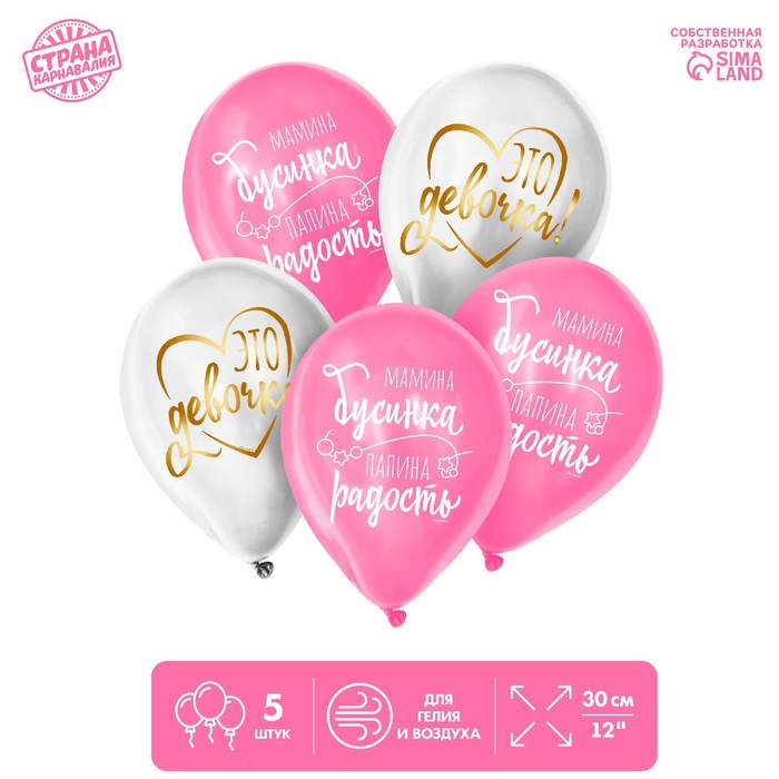 7581215 Набор из шаров 12″ «Наша жемчужинка», латекс пастель, набор 5 шт.