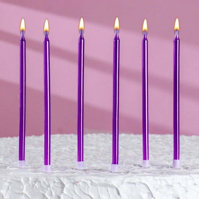 7597558 Свечи в торт «Ройс», 6 шт, высокие, 14 см, фиолетовый металлик