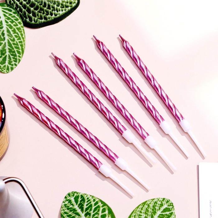7597563 Свечи в торт «Витые»,розовый блик, 6 шт,11 см