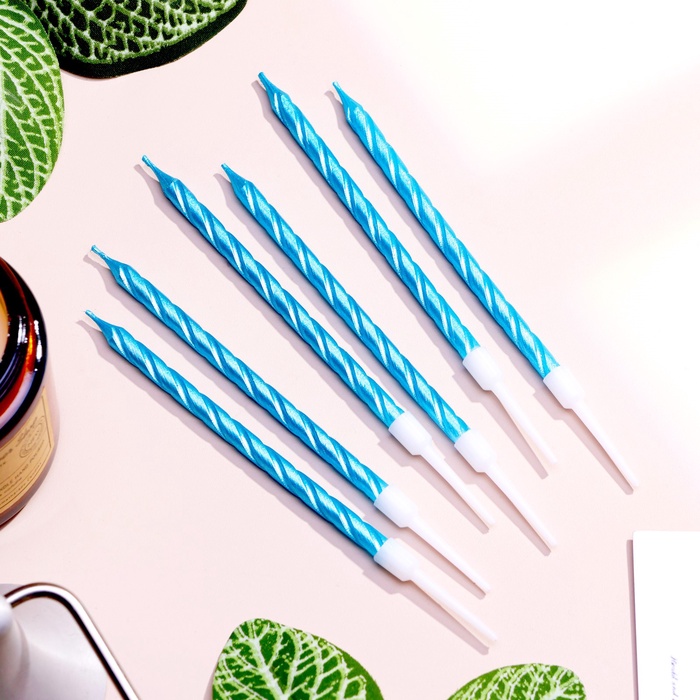 7597564 Свечи в торт «Витые»,небесно-голубые, 6 шт,11 см