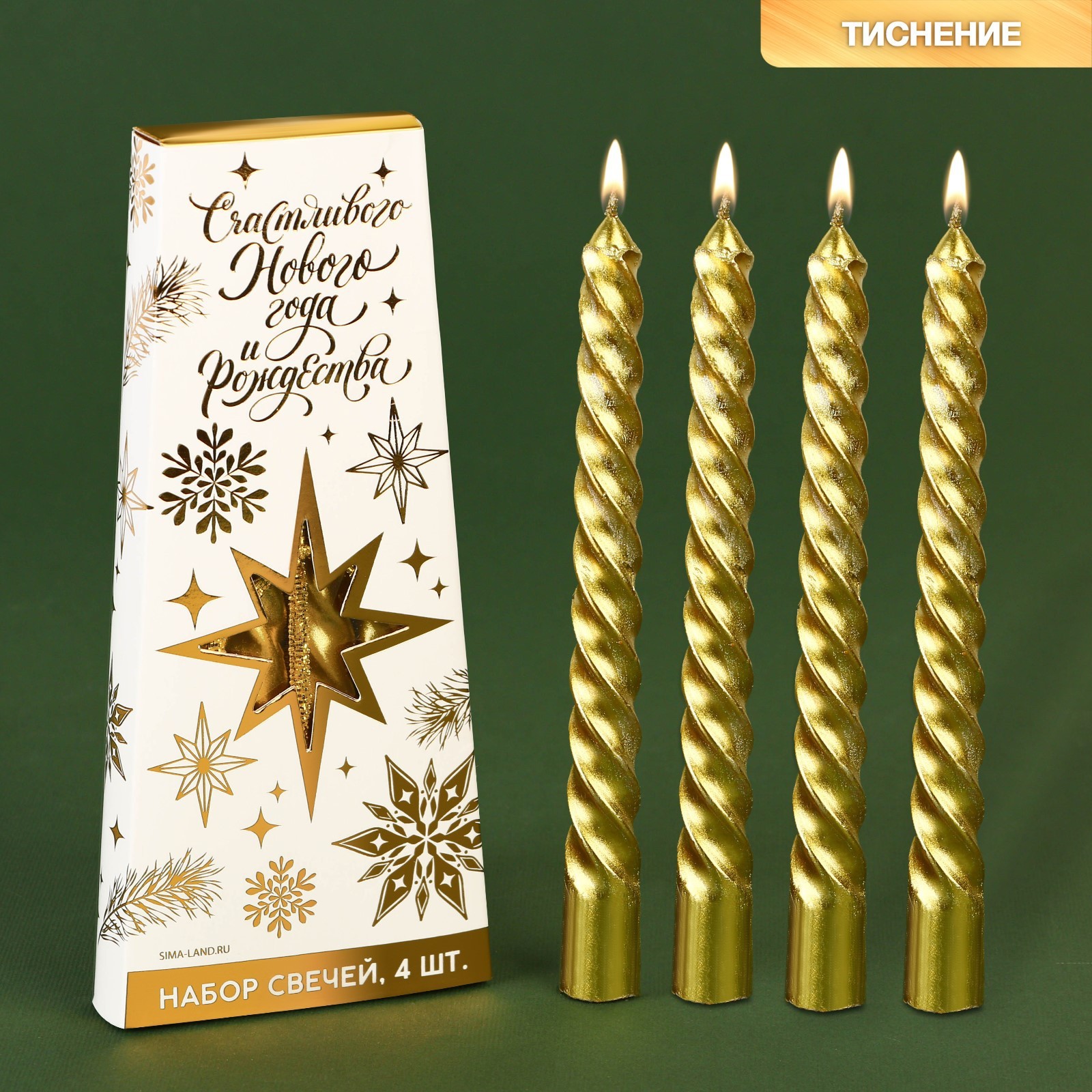 7646253 Набор свечи новогодние «Счастливого нового года и Рождества» 4 шт, золотые
