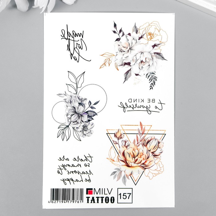 7830713 Татуировка на тело «Цветы и надписи» 10х15 см