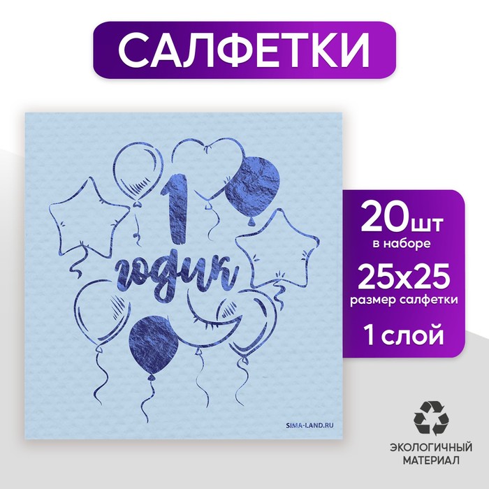 7911871 Салфетки «1 годик», 20 шт, голубое тиснение, 25 х 25см
