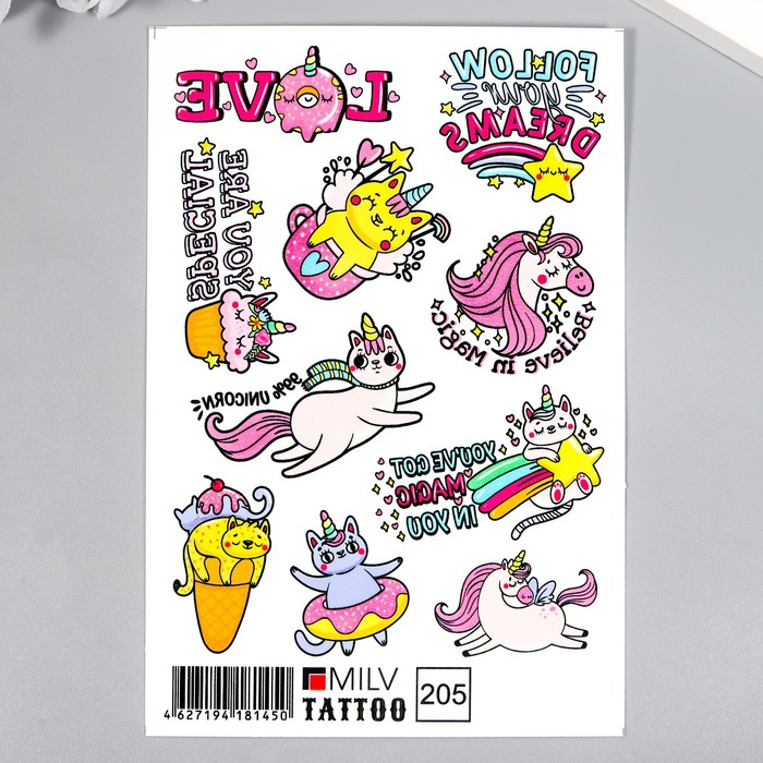 7915559 Татуировка на тело «Радужные котики» 10х15 см