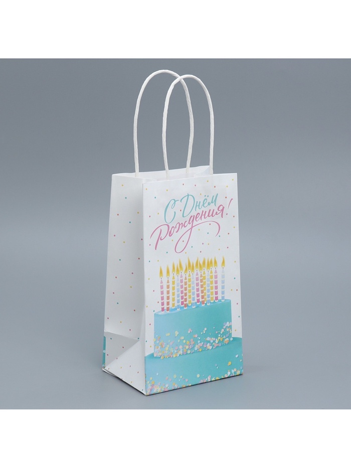 7992159 Пакет крафт «С днем рождения» 12х21х9 см