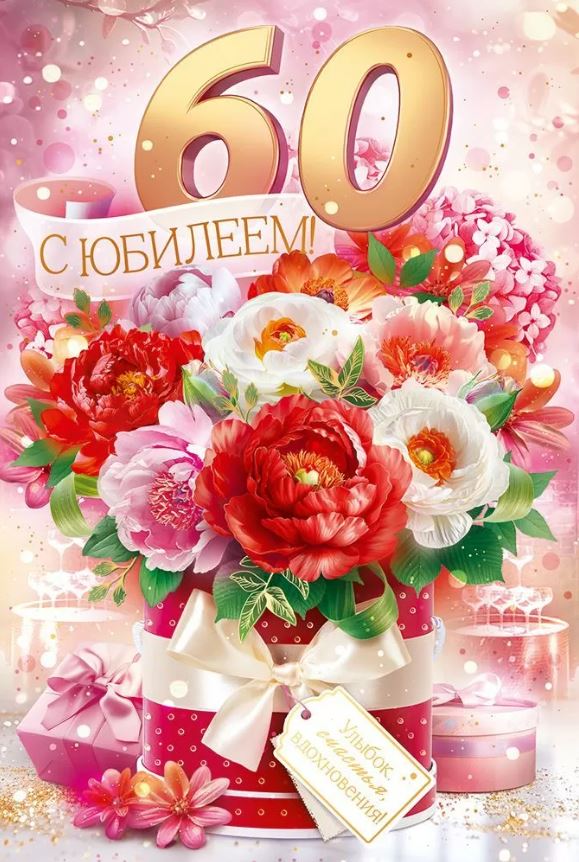 90000160 Открытка «С Юбилеем! 60 лет» Пионы А5