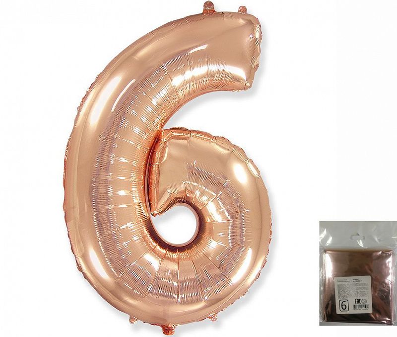 Шар фольгированный Цифра «6» розовое золото, производство Испания, в упаковке.