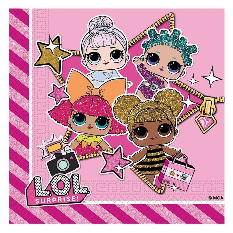 Праздничные двухслойные салфетки Куклы ЛОЛ добавят праздничных акцентов вечеринке.