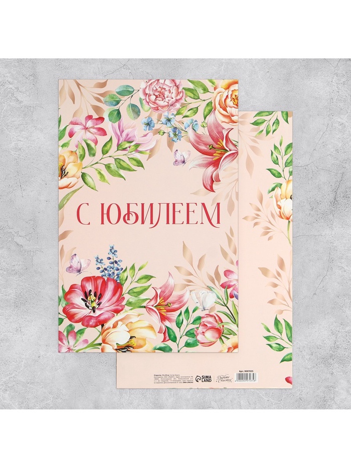 9097035 Открытка с конвертом для денег «С Юбилеем» цветы, 19х29см