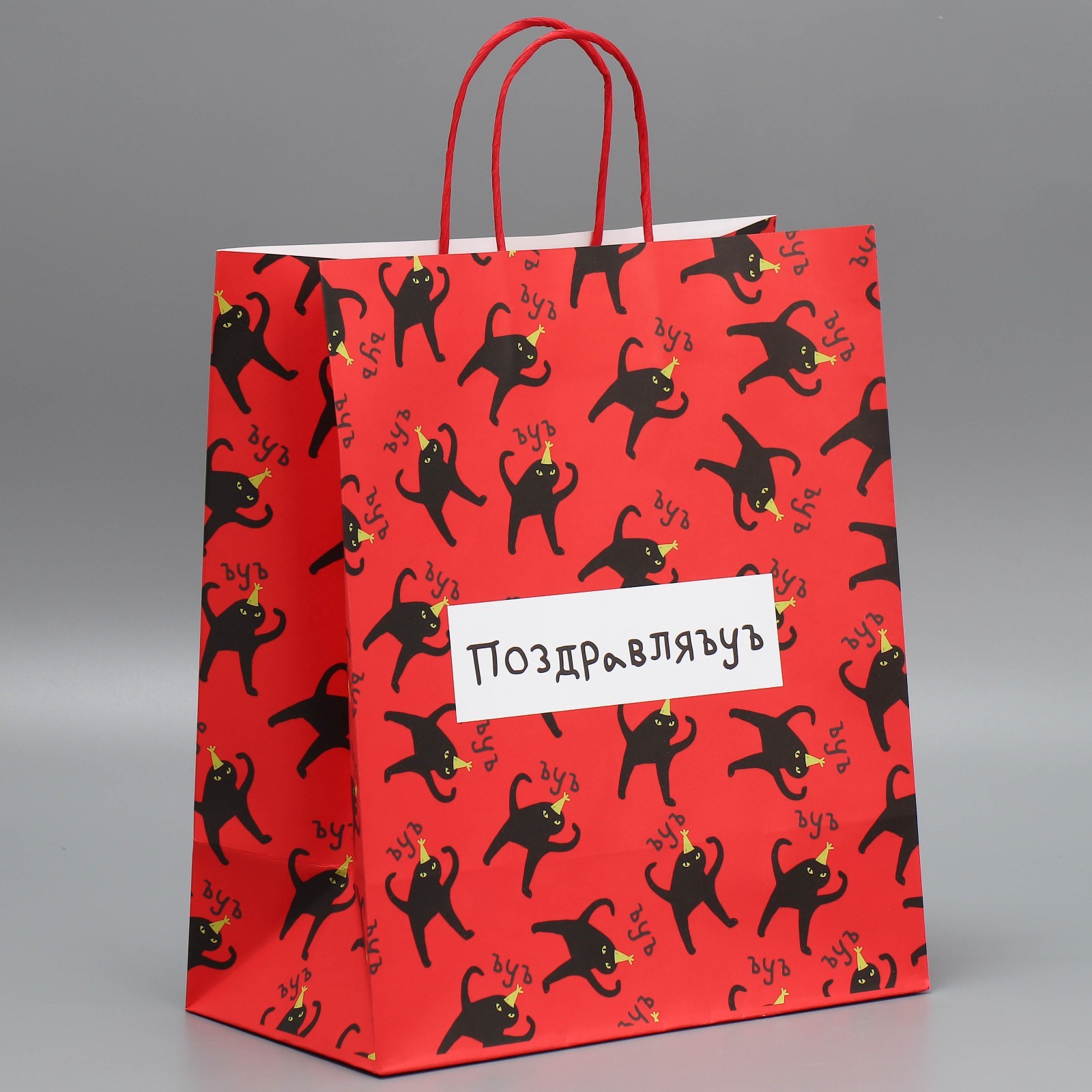 9304733 Пакет подарочный крафтовый «Поздравляю», 28х32х15 см