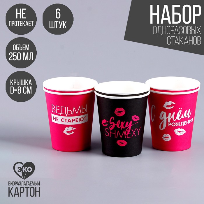 9380422 Стакан одноразовый бумажный «Ведьмы не стареют» (набор 6 шт),250 мл