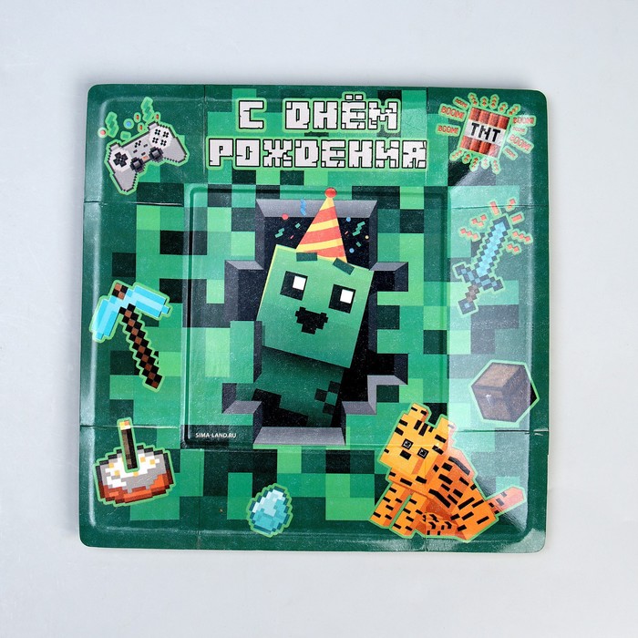 9392943 Тарелка бумажная квадратная » Пиксели «,21 см