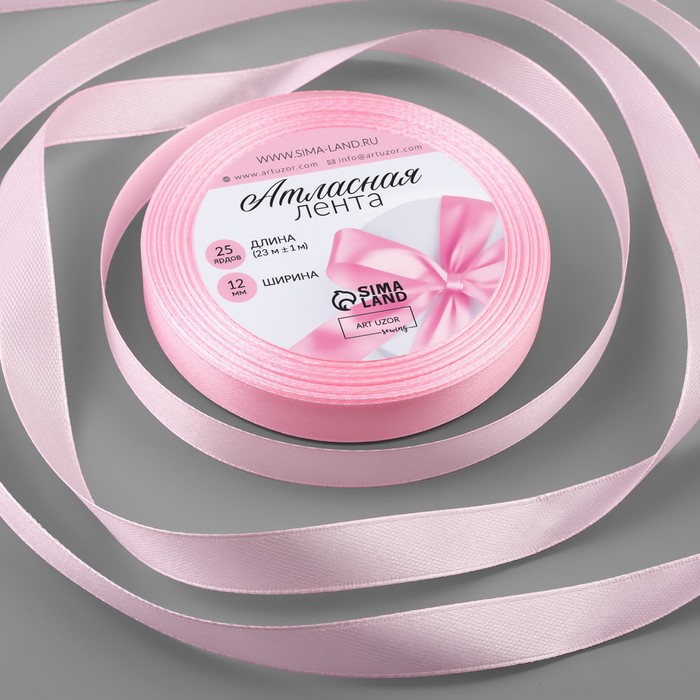 9487443 Лента атласная розовая гвоздика, 12ммх1м *1/23м