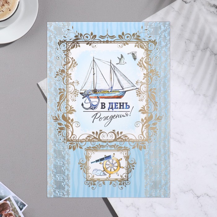 9499970 Открытка «В День Рождения!» корабль, А4