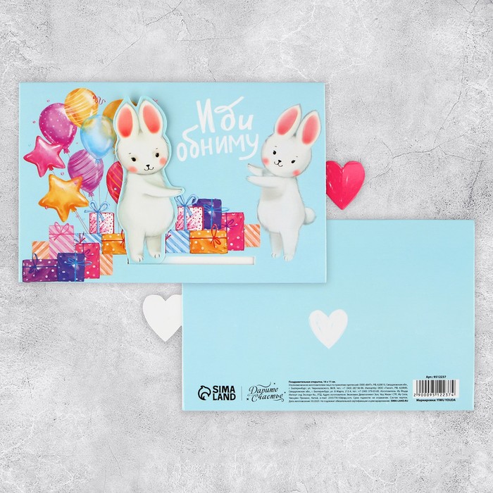 9512237 Интерактивная поздравительная открытка «Обнимашки», заяц, 16 х 11 см