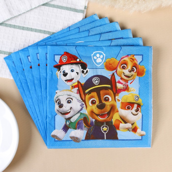 Праздничные салфетки «Щенячий патруль» дополнят оформление стола и добавят праздничных акцентов вечеринке.