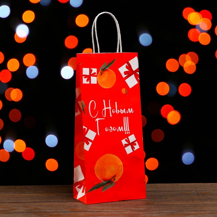 9541192 Пакет крафт под бутылку «С Новым Годом!», 14 х 8 х 32 см