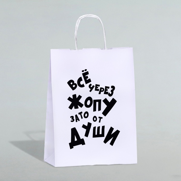9670358 Пакет подарочный с приколами, крафт «От души», белый, 24х14х28 см