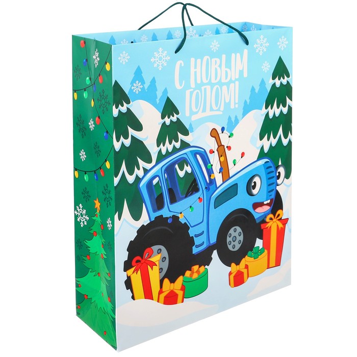 9719921 Пакет ламинат вертикальный «С Новым годом!», 31х40х11,5 см, Синий трактор