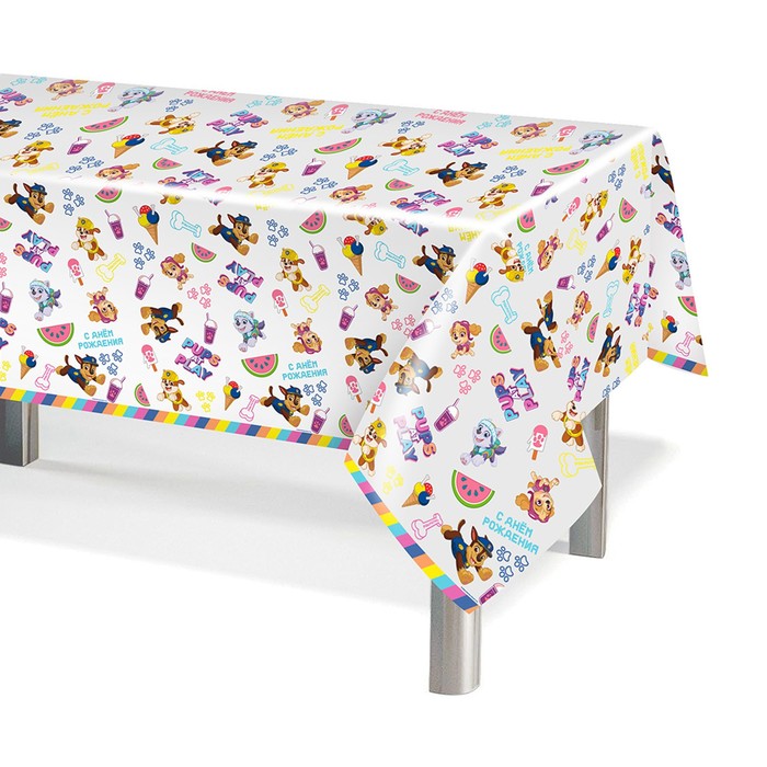 Праздничная скатерть «Щенячий патруль» дополнит оформление и добавит праздничных акцентов вечеринке.