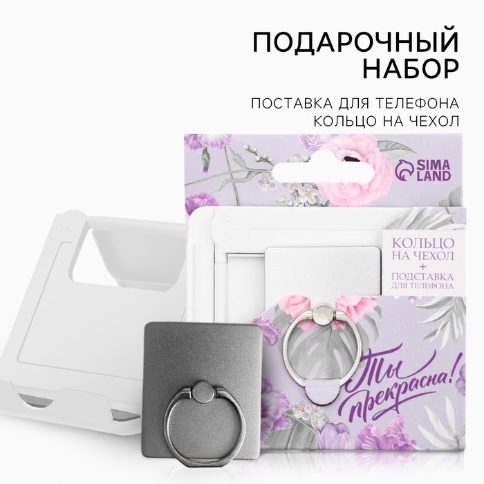9874784 Набор подставка для телефона и кольцо на чехол «Ты прекрасна!»