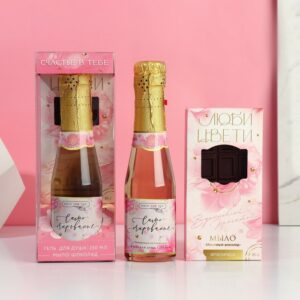 9148368 Подарочный набор женский «Цвети от счастья!», гель для душа во флаконе шампанское и мыло в ф