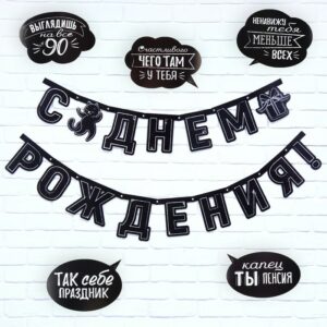 7733113 Гирлянда на люверсах с украшениями 5 шт. «С Днем рождения!», черно-белый, длина 246 см