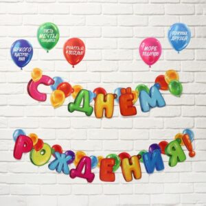 7733115 Гирлянда на люверсах с украшениями 5 шт. «С Днем рождения!», разноцветный, длина 223 см