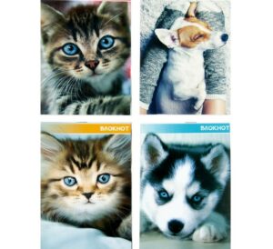 3554016 Блокнот А6, 40 листов в клетку на скрепке «Котята и щенята»