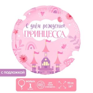 10198616 ШФ 18″ (46см) Круг «С Днём Рождения, принцесса», упак