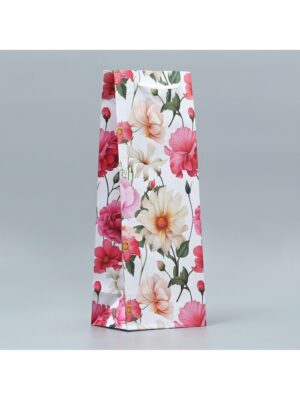 10198713 Пакет подарочный под бутылку «Цветы», 36 х 13 х 10 см