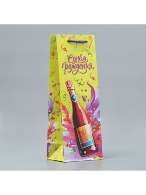 10198715 Пакет подарочный под бутылку «День рождения» 36 х 13 х10 см