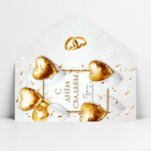 10363213 Конверт для денег «С Днем Свадьбы», сердца золото