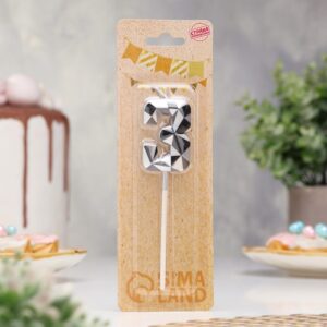 10603225 Свеча тортовая цифра «3» «Алмаз» серебро