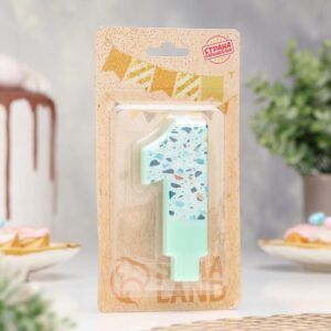 10603252 Свеча тортовая цифра «1» «Мозайка» голубой