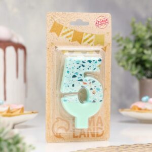 10603256 Свеча тортовая цифра «5» «Мозайка» голубой