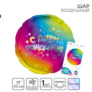 10697301 ШФ 18″ (46см) Круг «С Днём Рождения!», звезды, упак